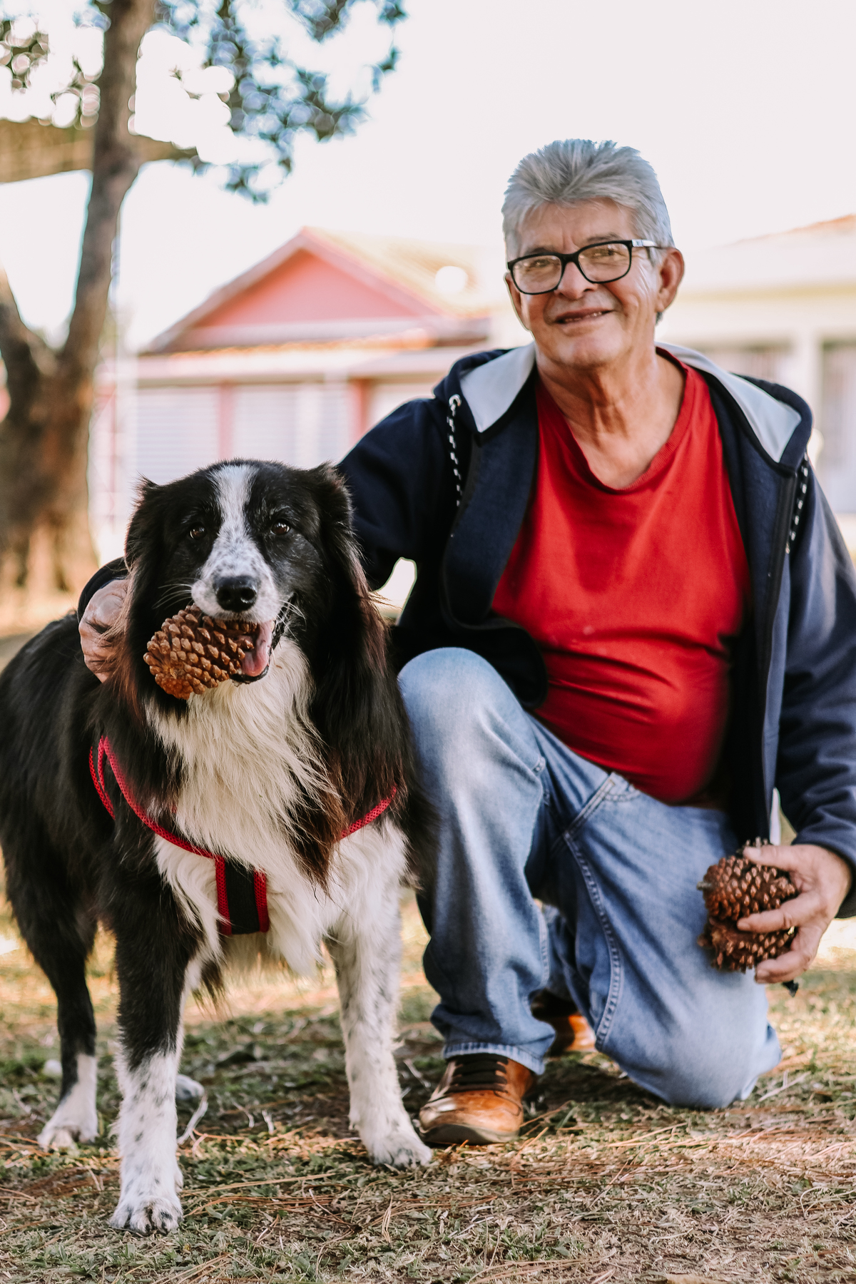 Enquanto eu aguardava um casal para fazer um ensaio, me deparei com o senhor Donizeti brincando com sua border collie, Gaia. Então não pude perder a oportunidade de registrar esse momento tão lindo de descontração.